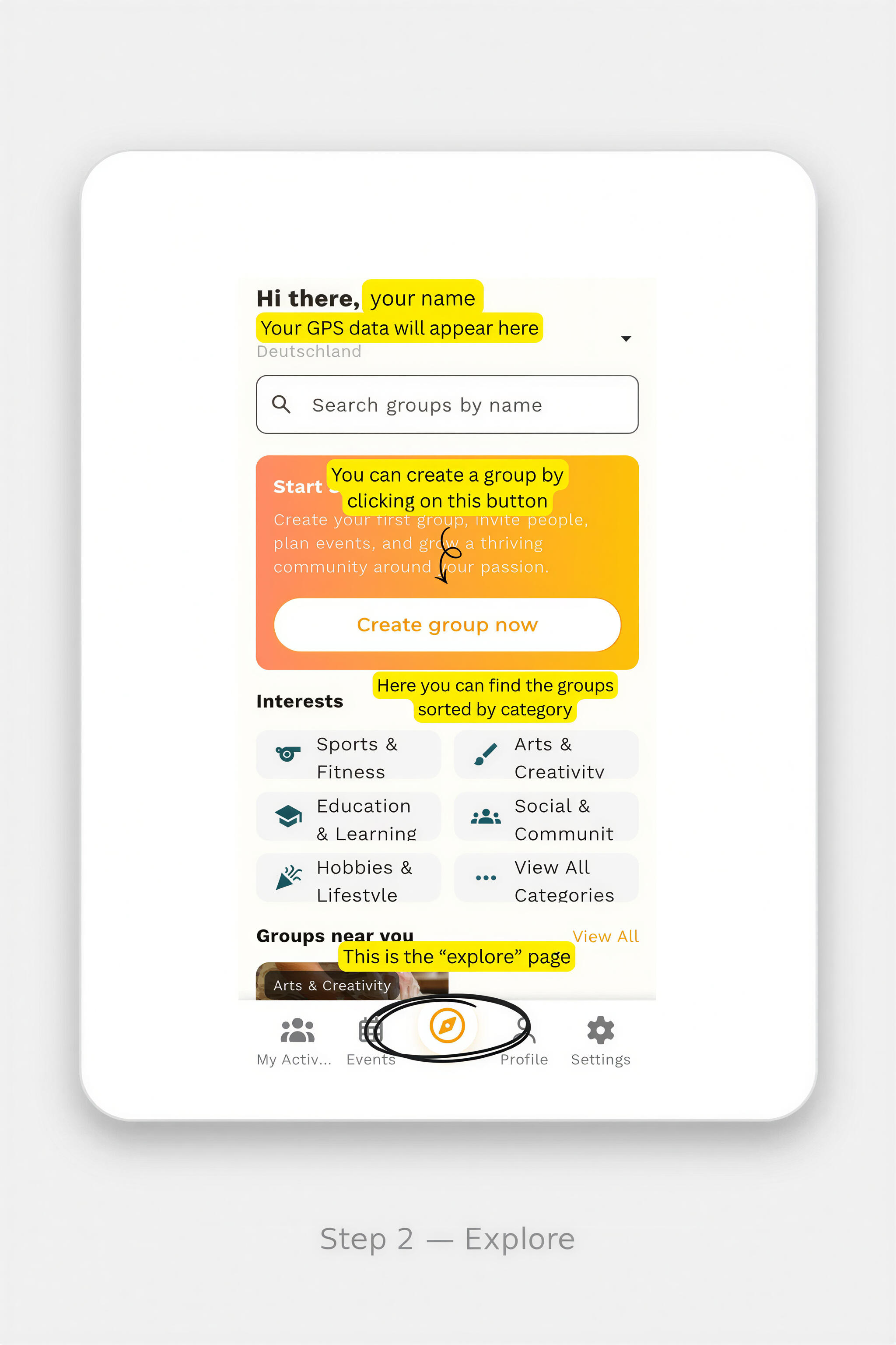 The app is designed for finding local groups and events, so we use your information to connect you with other users – for example: