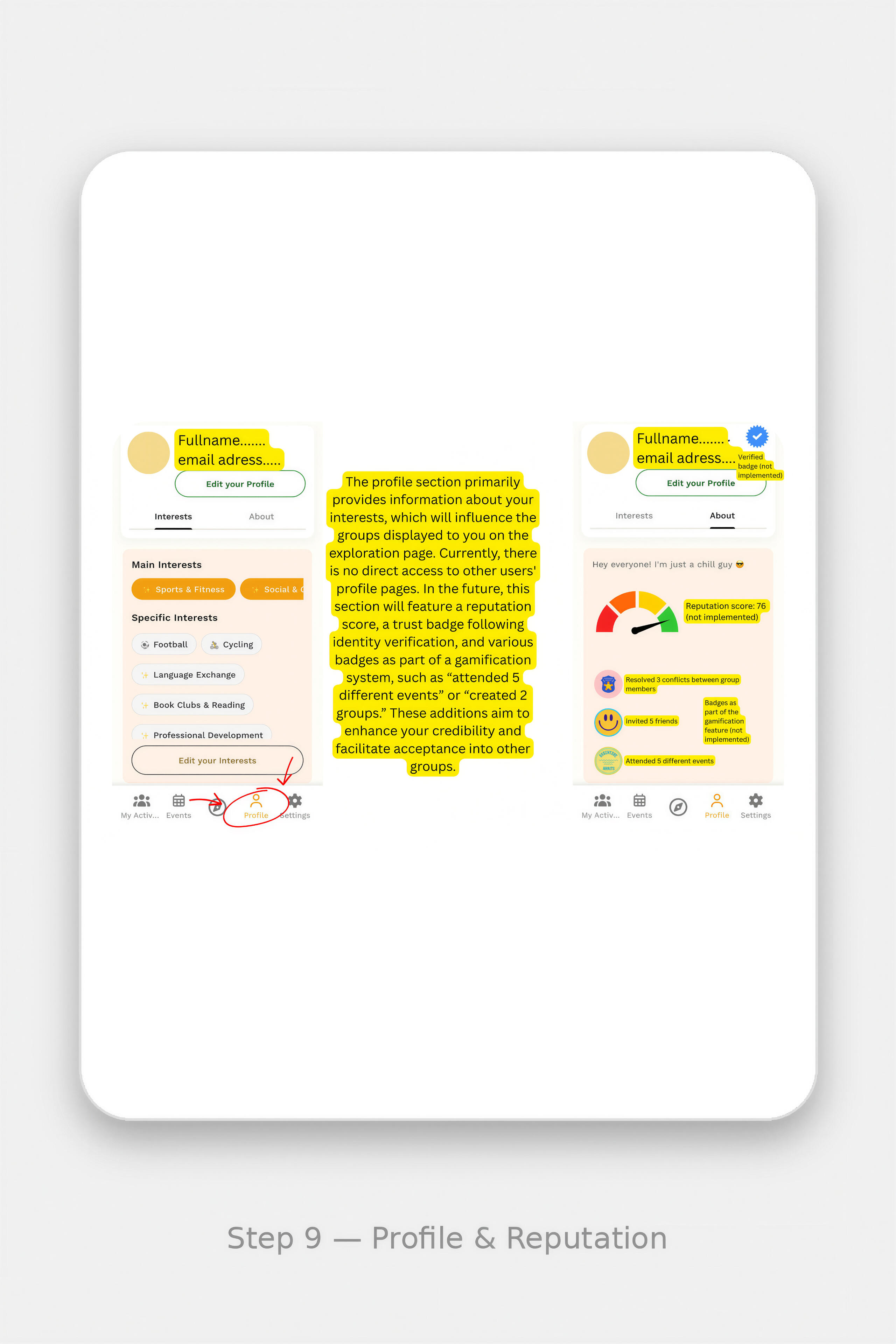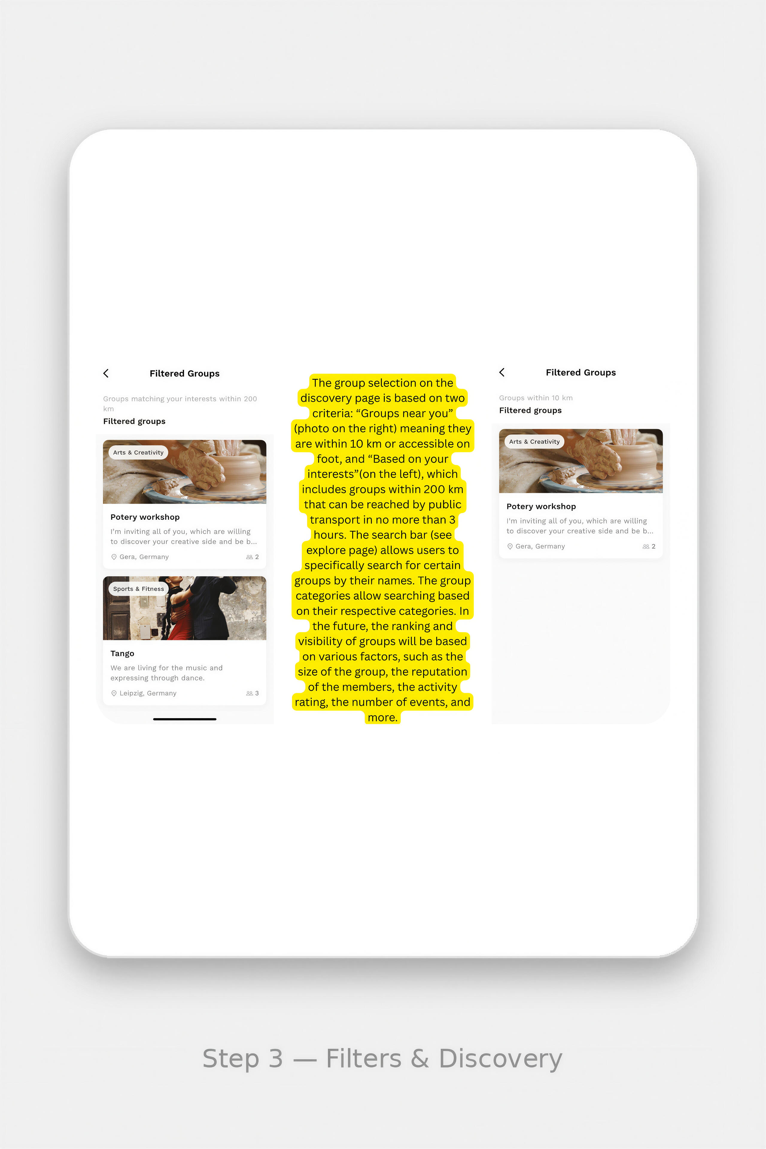 Information you add to your profile, including your profile photo, interests (hobbies, group categories you like), and any bio or description. These help personalize your experience and let other users know about you in the app.3. Location Data