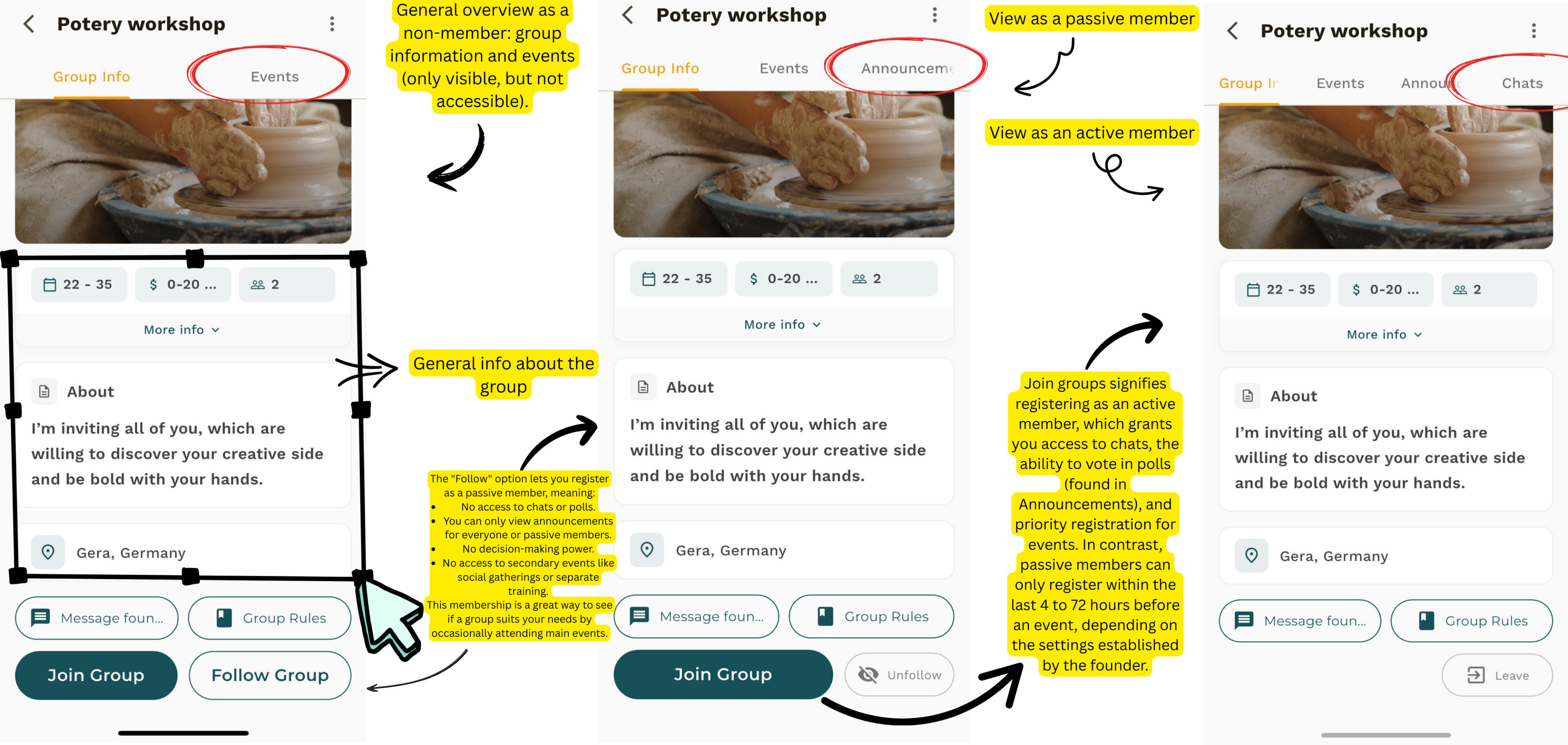 - sharing your RSVP status with the organizer and attendees of an event.Any posts or messages you send in a group/event will be visible to the other authorized members of that space.3. Communicate with You